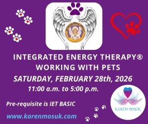 The Integrated Energy Therapy® for Pets is focused on using Integrated Energy Therapy® energy and techniques to support pets in their wellness (especially cats, dogs and horses). In this class you will learn about the souls nature of each of these pets, how to use cellular memory functions and how to apply the BASIC Level IET® techniques to help clear energy blockages from the cellular memory of these pets. What can cause energy blockages in these pets? Situations that create a state of distress. Energies empathetically taken on from the owners for healing. This course is for everyone who loves and owns a pet or works with pets as a veteranian, vet technician, animal rescue and animal caretakers.